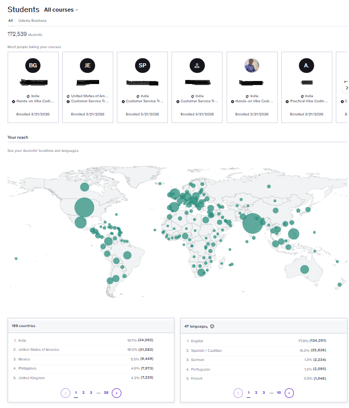 Cientos de recomendaciones en LinkedIn y 60.000 en Udemy